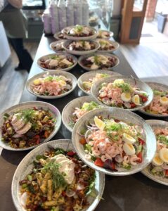 Italiensk kokt skinka tillsammans med krämigt tärnad holländsk hårdost och perfekt kokt ägg. En fräsch mixsallad och smakrik marinerad pasta ger både fräschör och fyllighet, medan knaprigt baconcrisp tillför härlig sälta och crunch. Serveras med valfri dressing efter eget tycke och smak, samt nygräddat vitlöksbröd. Vid avhämtning ingår dessutom vårt rustika surdegsbröd – en komplett och njutbar måltid som både mättar och väcker smaklökarna.