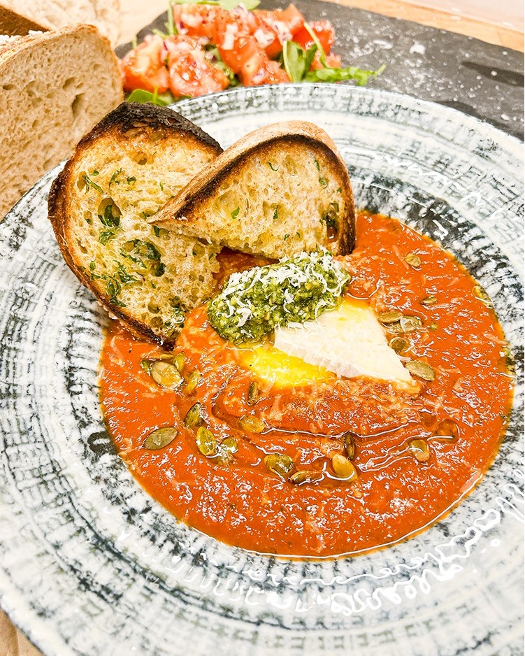 Nykokt pasta i mustig tomatsås – perfekt al dente pasta vänd i en rik och kraftfull tomatsås kokad på solmogna San Marzano-tomater. Rätten toppas med krispig friterad mozzarella och ett generöst lager riven parmesan som smälter ljuvligt. Serveras med en fräsch sidesallad och nygräddat vitlöksbröd. Vid avhämtning ingår även vårt rustika surdegsbröd